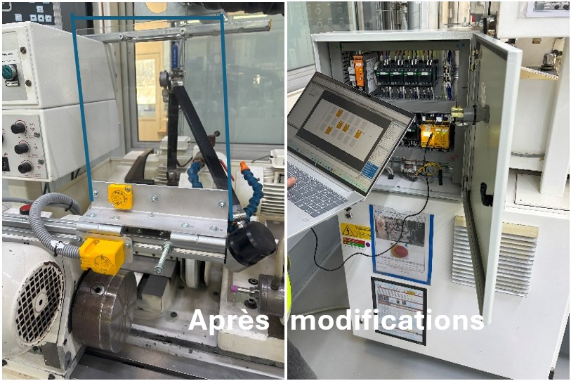 - L’évacuation des produits finis est automatisée via un manipulateur 3 axes Festo équipé d’une pince adaptable à toutes les références client.